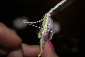 I stitched twice over the same area, giving the thread a brief tug to make sure that it was secure.