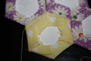A friend of mine is also trying to learn to make the paper-pieced hexagons.  I have tried explaining it to her & decided that a short visual explanation might make more sense, since I really don;t know all of the proper terms & I have just started this myself.