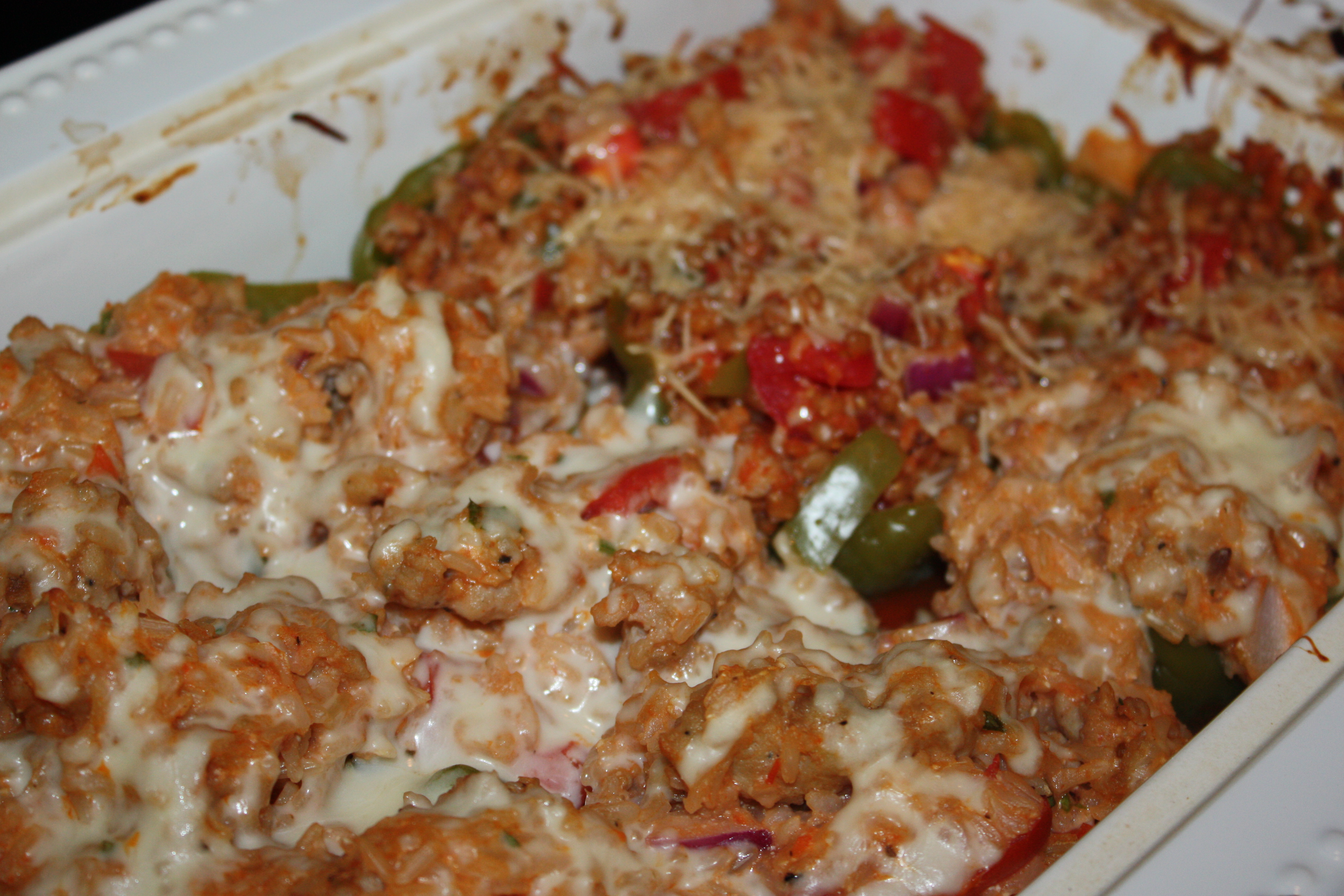 I spread a baking dish with some of the marinara sauce & filled each half of pepper with the filling & placed on top of the sauce. ( I baked all of them in the same pan.)